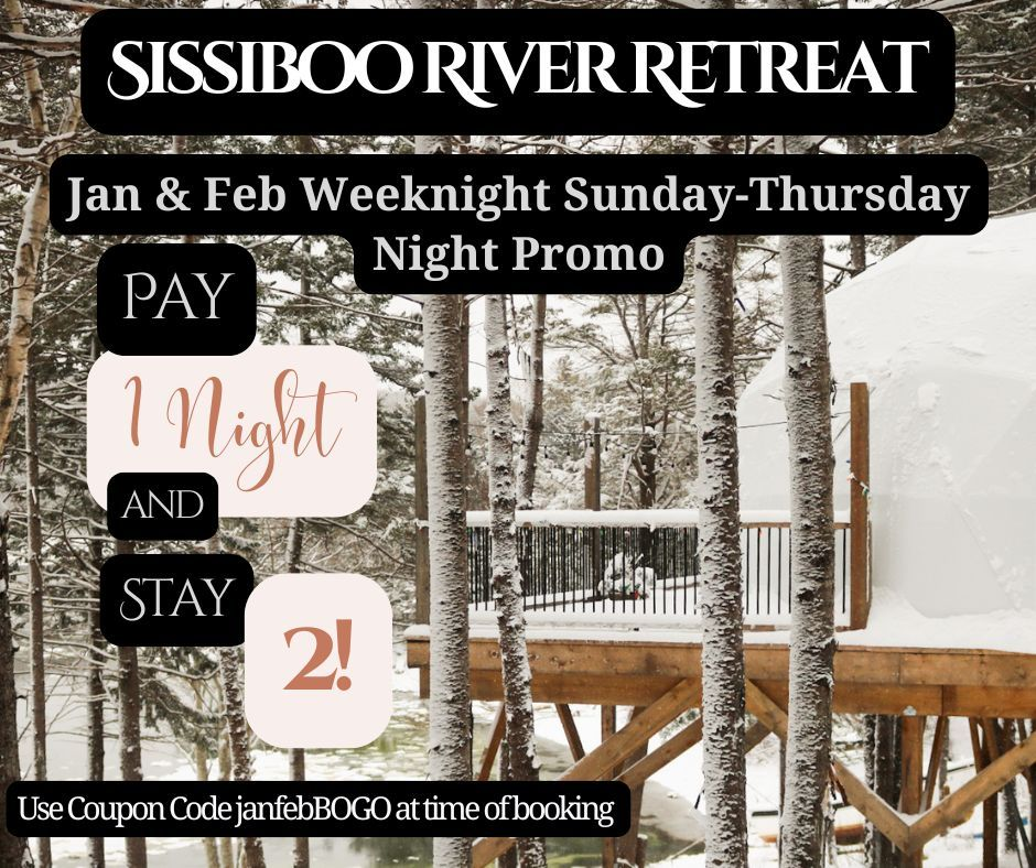 Nestled in the trees along the Sissiboo River your relaxing, comfortable glamping experience awaits. Our 4-season geodesic domes offer all the privacy and comfort of a high end hotel with a bit of camping fun. Great for families looking for making memories of a lifetime, friends looking for quality time together, singles wanting to chill and relax and couples looking for that romantic get away, our domes and special packages you will never want to leave.