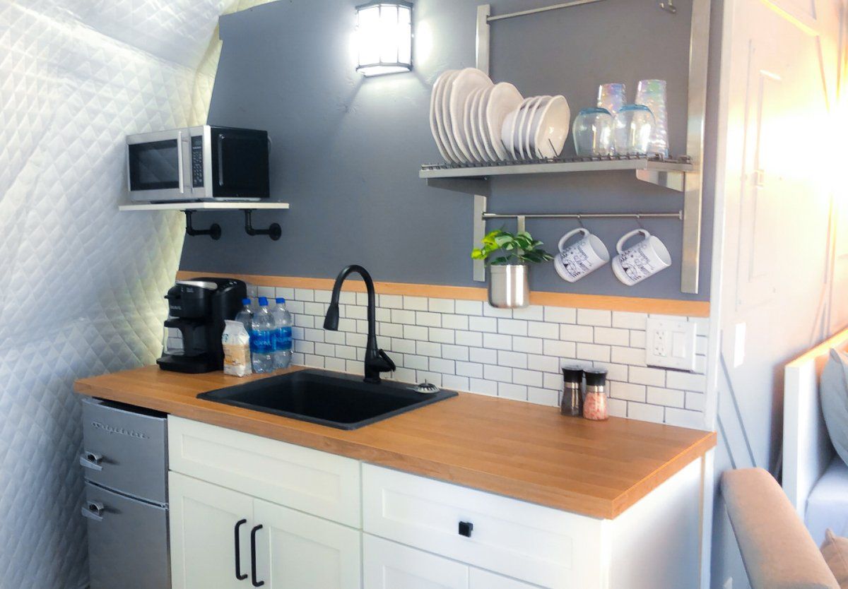 - Kitchenette with dishwashing sink and supplies (detergent/cloths/towels)