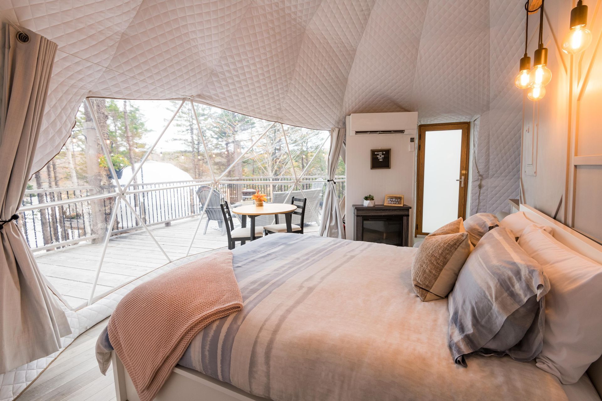 If you are new to Glamping and wondering what to expect, then we suggest The Fireside - a cozy couples romantic dome. Snuggle under the comfy duvet in the queen size bed while a nearby chair unfolds to make a small bed for a child or small adult or relax in your private Hot Tub.